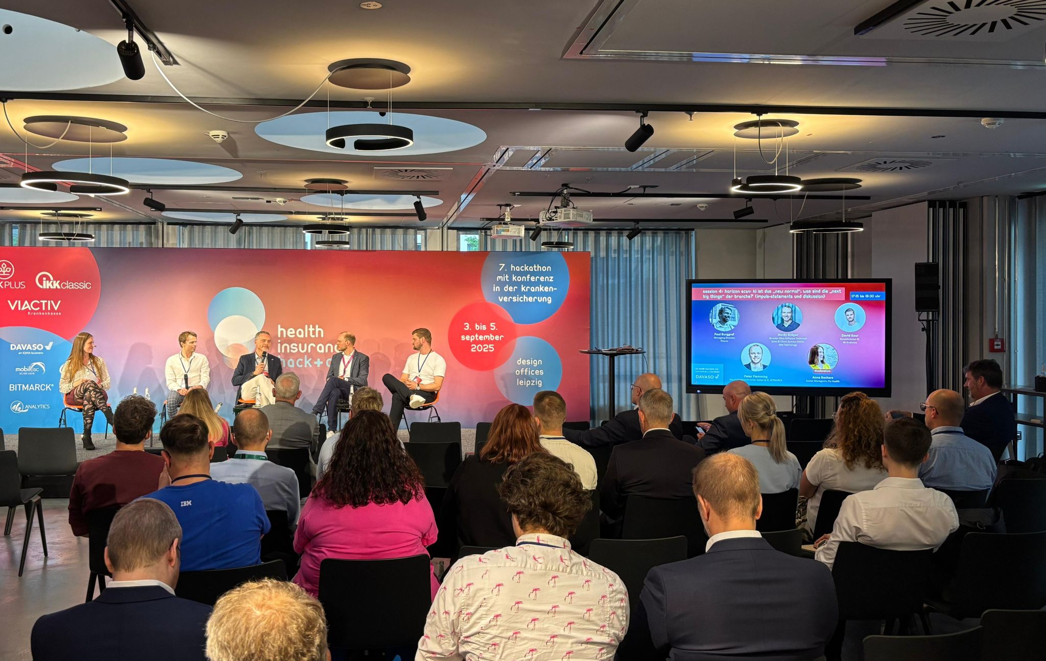 In dieser Session gab es Impulsvorträge von Paul Burggraf (Thryve), Hardy Gröger (IBM) und Peter Flemming (BITMARCK). Unter der Moderation von Anna Bechara wurden die Chancen und Herausforderungen der KI in der Krankenversicherung beleuchtet.